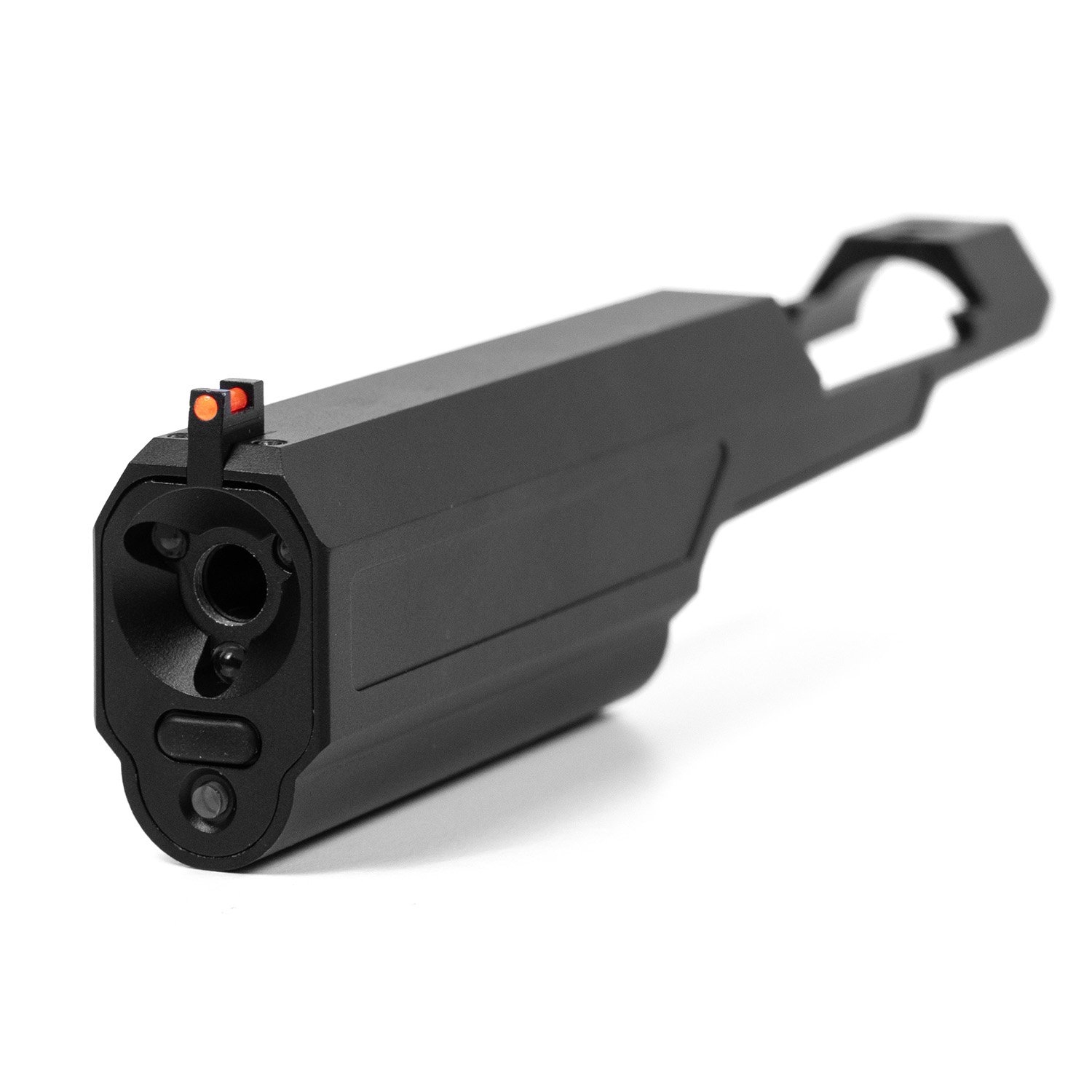 Tento integrovaný tracer pro SSP5 ti umožní osvětlit tvoje tracer BBčka a vytvořit barevný výšleh, aniž bys musel na pistoli přidávat nějaké příslušenství a zachováš si minimální délku pistole. SSP5 s tímto závěrem je jen o 6 mm delší než standardní 6″ SSP5.