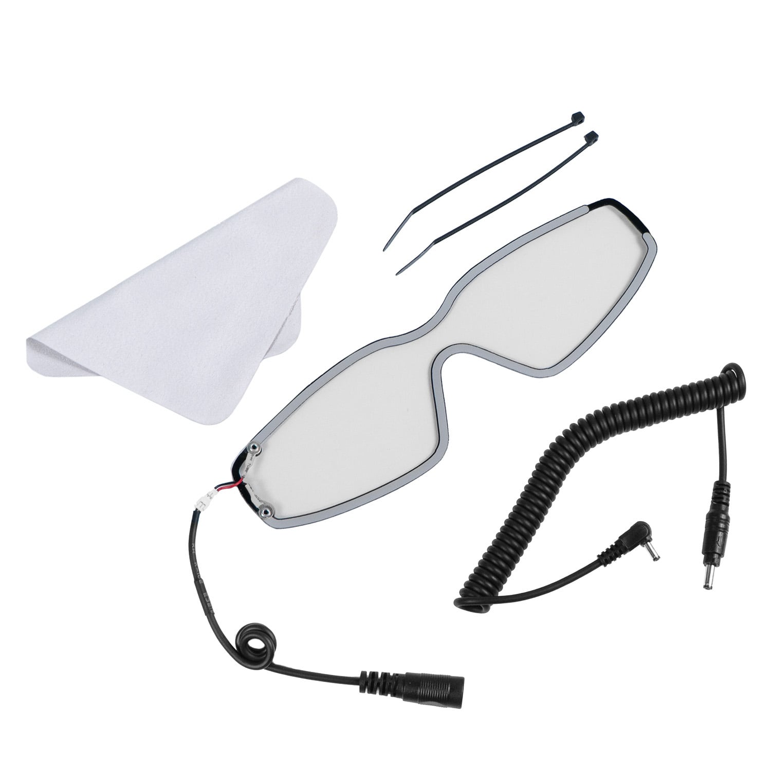 Es hat einen eingebauten Heizkreis, der die Linse sanft erwärmt und so das Beschlagen deiner Schutzbrille verhindert. Klebe den Einsatz einfach mit dem vorinstallierten Klebeband in deine vorhandene Schutzbrille, schalte es ein und vergiss das Beschlagen komplett.