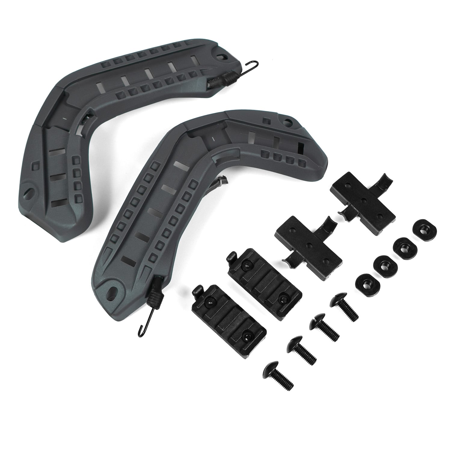 Dieses ARC Rail Set kommt mit 1x LHS Rail, 1x RHS Rail, 2x Goggle-Strap-Organizer, 2x Picatinny Adapter, und 1 Satz Befestigungsmaterial (Schrauben, Muttern).