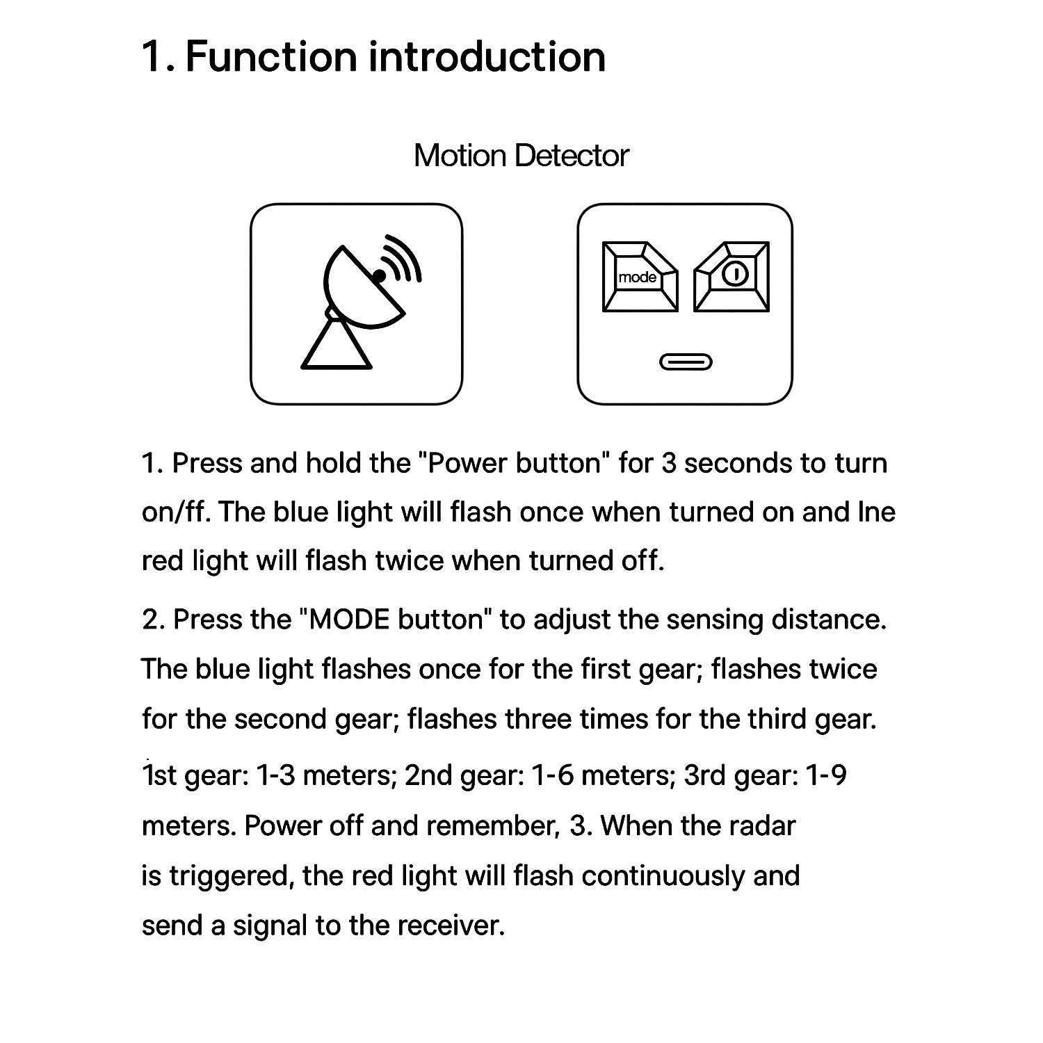 - Bewegungserkennung bis zu 3/6/9 Metern