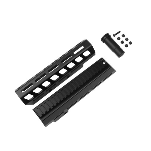 Un jeu de garde-main de rechange en aluminium pour le SSR249. Points de fixation Γ fente aux positions 3, 6 et 12 heures et Picatinny sur la position infΓ©rieure Γ 6 heures.