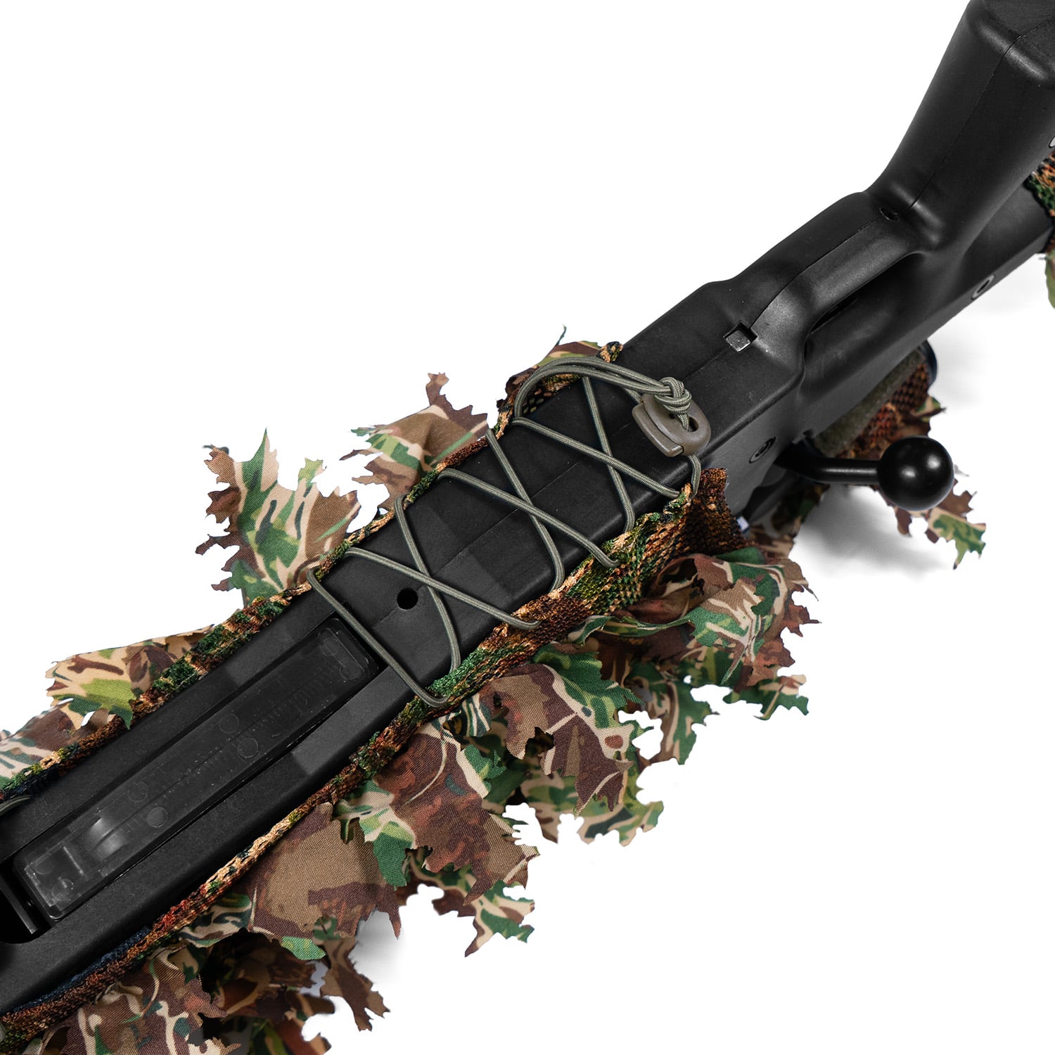 Emberként nagyon jól ismerjük fel az ismerős formákat, és egy nem álcázott puska könnyen elárulhatja a pozíciódat. A fegyvered festése segíthet, de ennek vannak hátrányai, ezért úgy döntöttünk, hogy találunk egy új, jobb megoldást. A 3D-s levelekkel ellátott puska huzat a legjobb és legegyszerűbb válasz a camouflage problémádra.