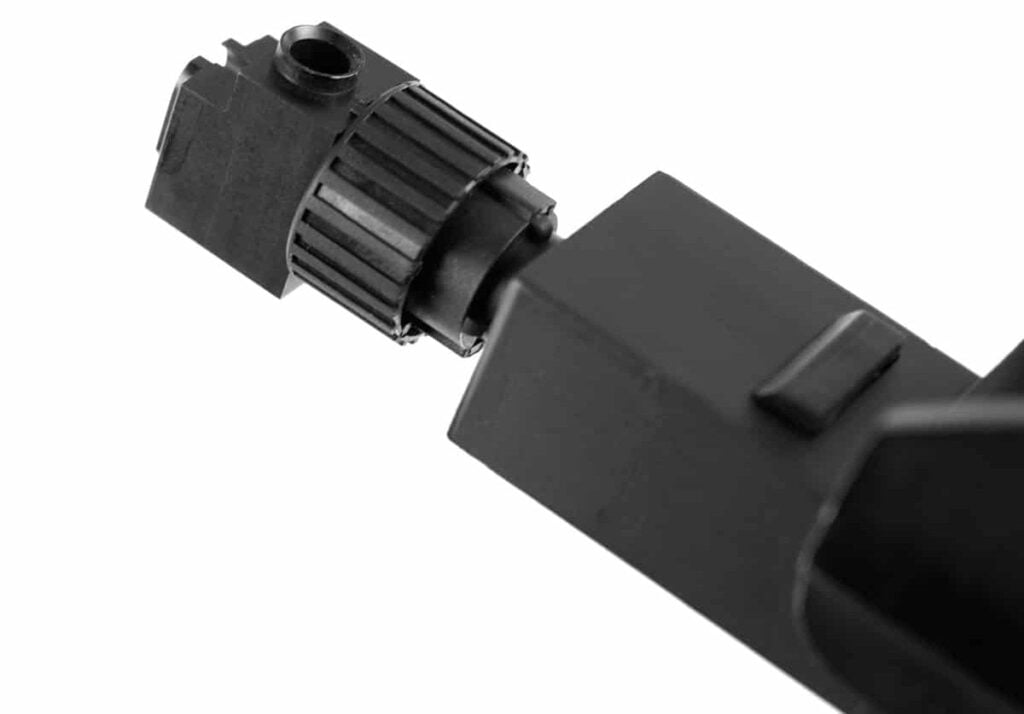 Anche con alcune repliche che consentono una sostituzione rapida della molla, è comunque necessario gearbox il gearbox dalla replica cambiare la molla. Ridurre le prestazioni replicadiventa così un’operazione fastidiosa che richiede una mezz’ora. Non con l’SSR90. Basta rimuovere il calciolo e si è pronti per effettuare la regolazione. Il tutto in meno di un minuto.