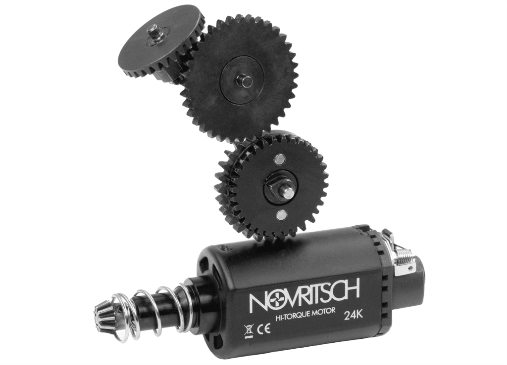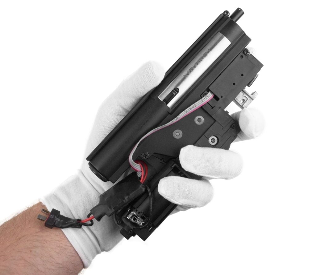 La maggior parte delle AEG airsoft oggi è dotata di ingranaggi in acciaio sinterizzato 18:1. Sono più economici, fragili e possono rompersi facilmente. Sono più economici, fragili e possono rompersi facilmente, con una risposta grilletto e una cadenza di fuoco più lenta. Noi abbiamo optato per i più costosi ingranaggi 12:1, tagliati a CNC da acciaio massiccio, e per un motore ad alta coppia con magneti al neodimio super resistenti.