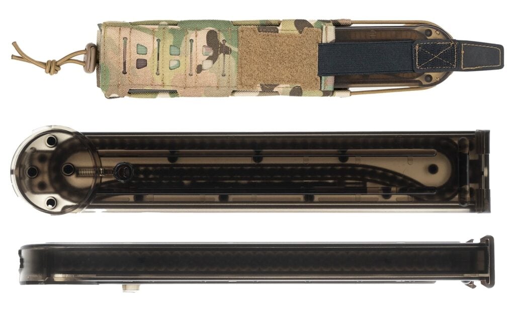 L'SSR90 viene fornito con un caricatore trasparente da 100 colpi. Abbiamo progettato tasche nostre tasche tattiche. Basta procurarsene un paio e l'equipaggiamento sarà pronto per il nuovo fucile mitragliatore.