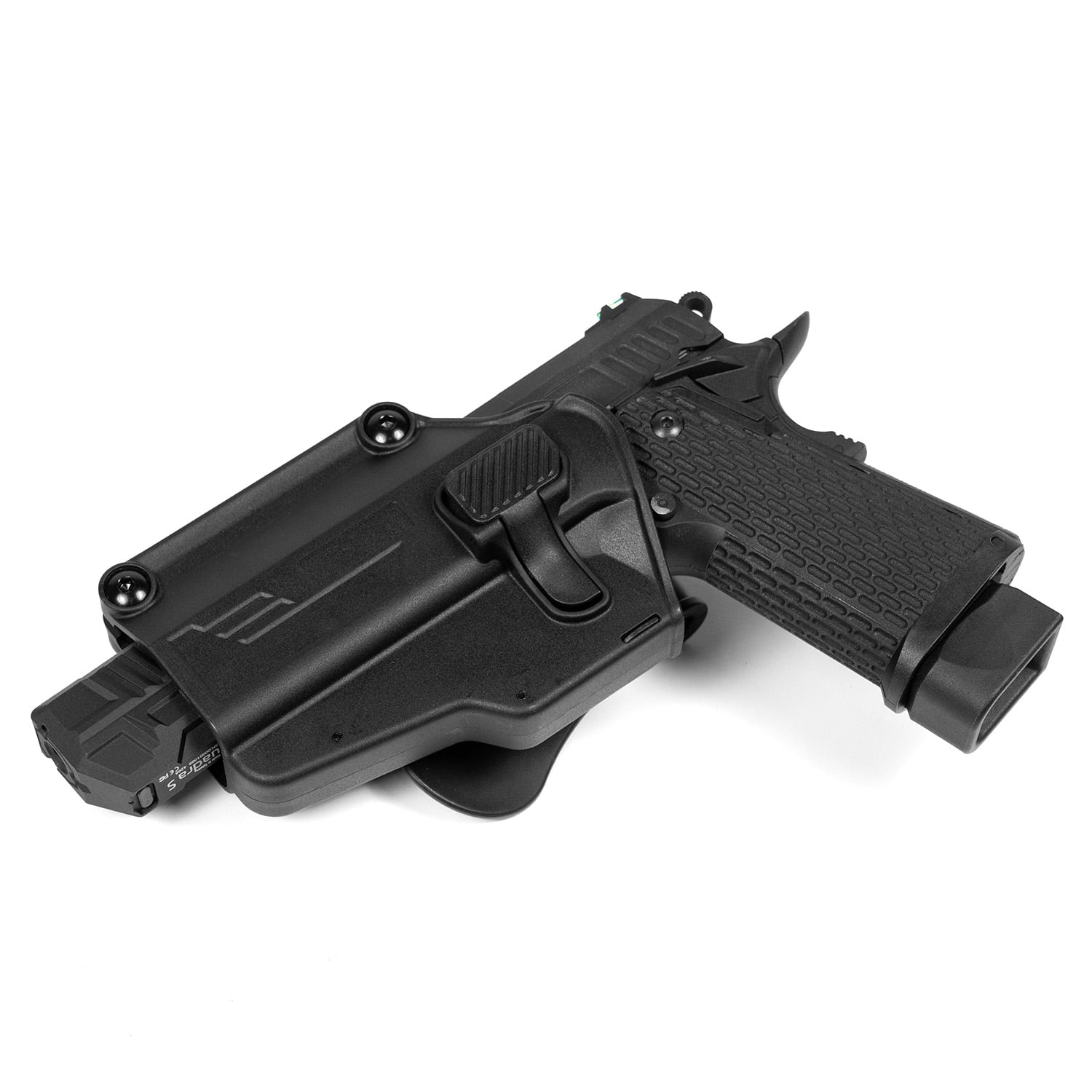 This rectangular Quadra tracer not only follows the slim look of your pistol but also allows you to still holster it without any fitting issue.