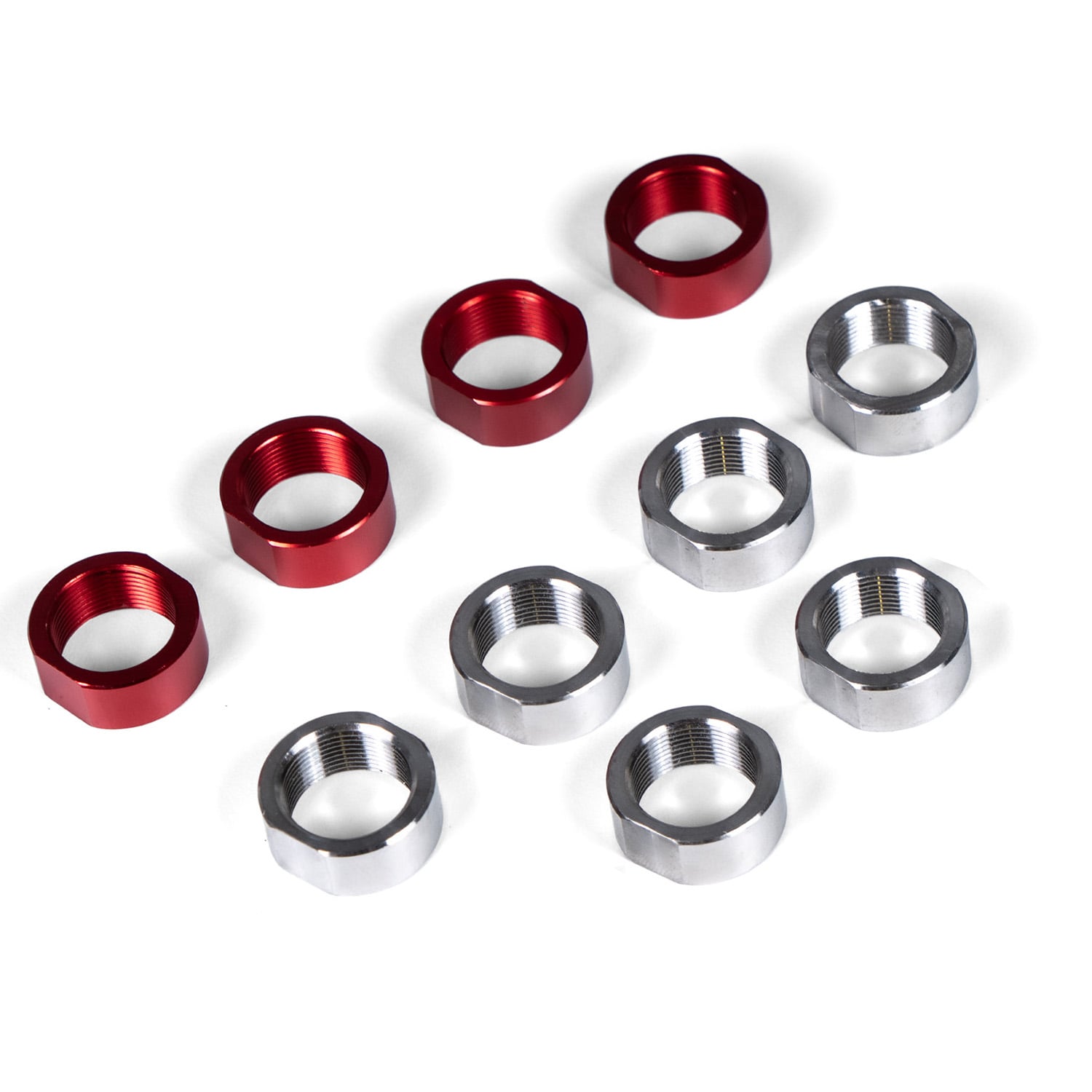 The package includes: 6x stainless steel weights (15g) & 4x red anodized aluminum weights (5g)