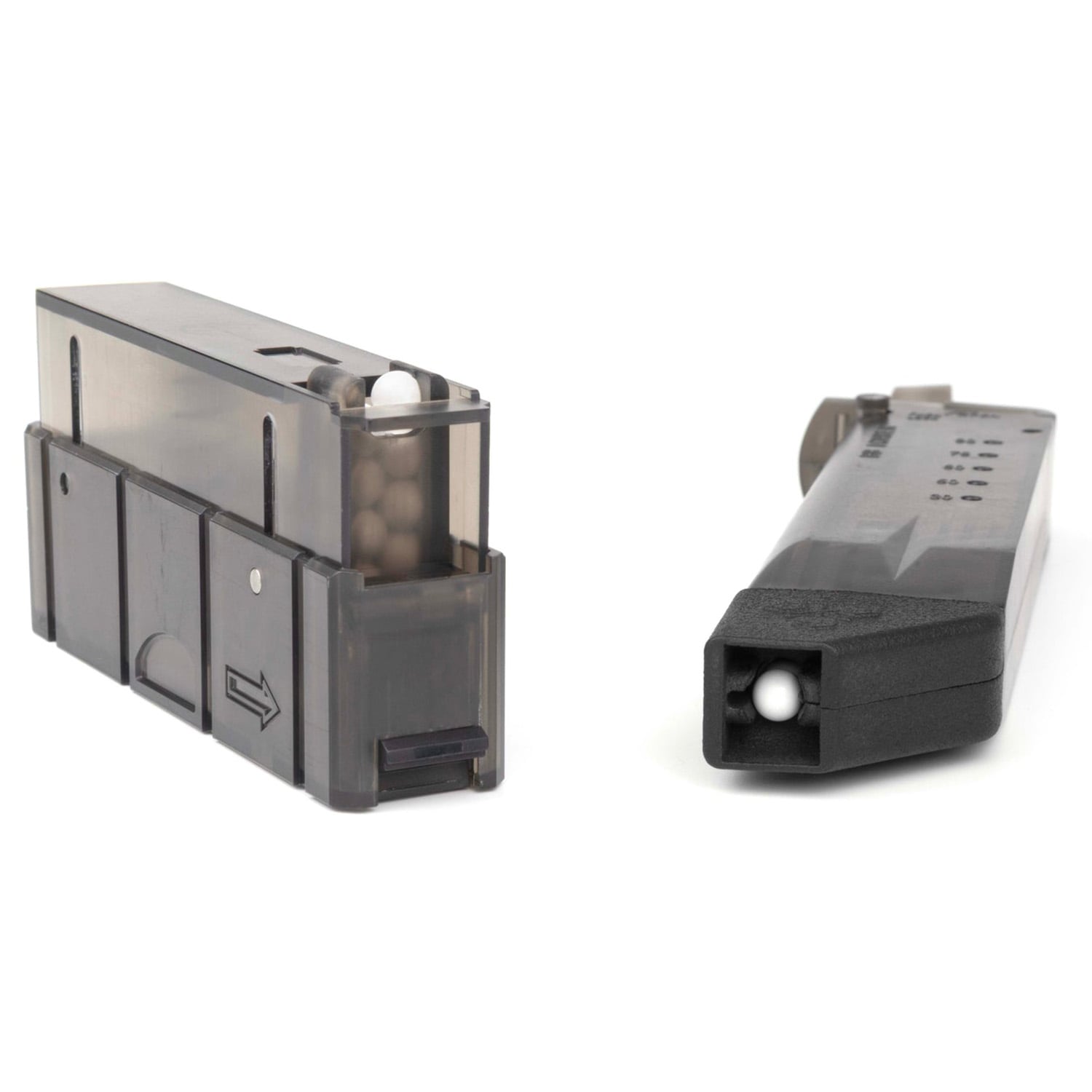 It attaches directly to the tip of your speedloader and has built-in BB retention, so no ammo is wasted.
