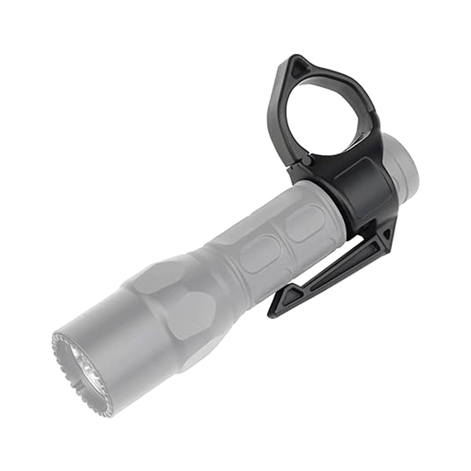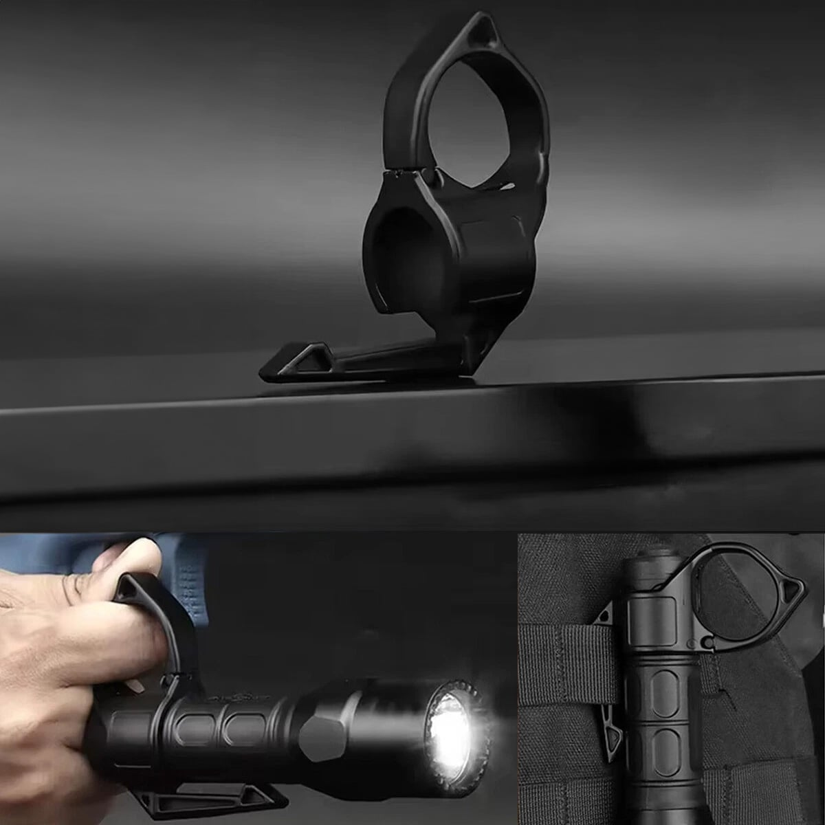 This flashlight holder allows you to easily handle your flashlight while using a sidearm.