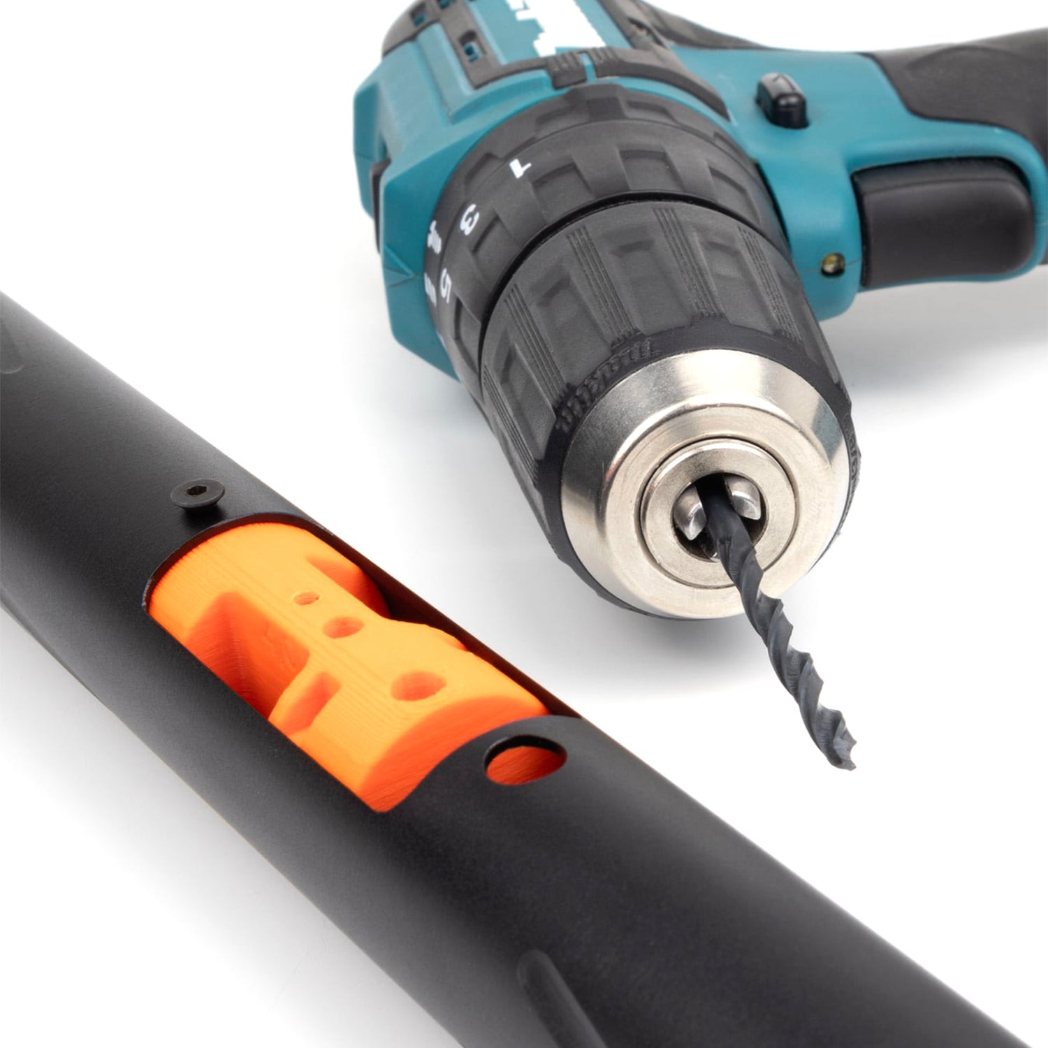 - All of the parts in the kit, except for the drill jig, are CNC-machined aluminum and Nylon