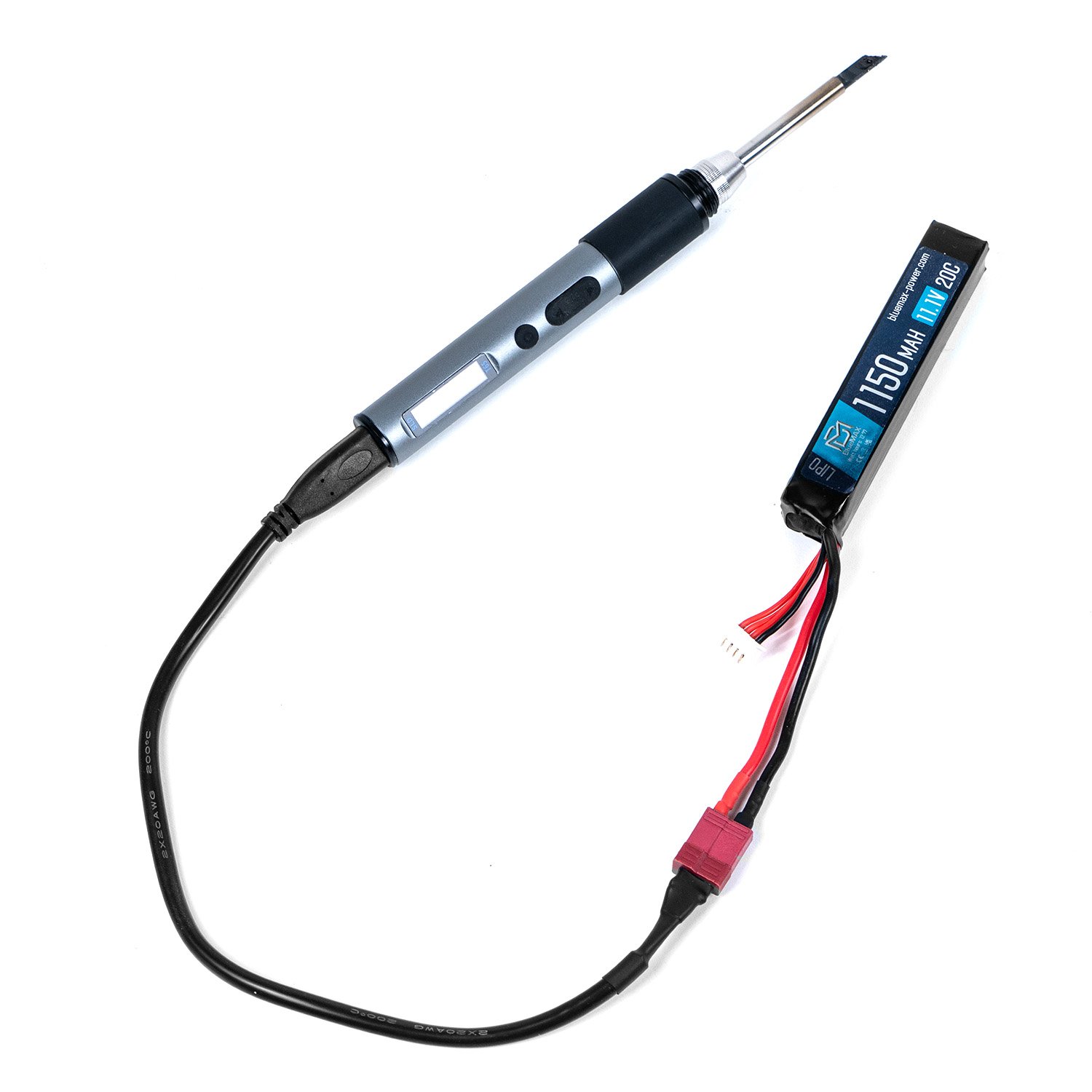 Use this cable to power your portable soldering iron with your LiPo battery! This way, you can always use your soldering iron on the field for emergency repairs.